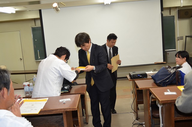集合写真 写真中央 植田先生、右 北村副会長、左 柴崎常任理事