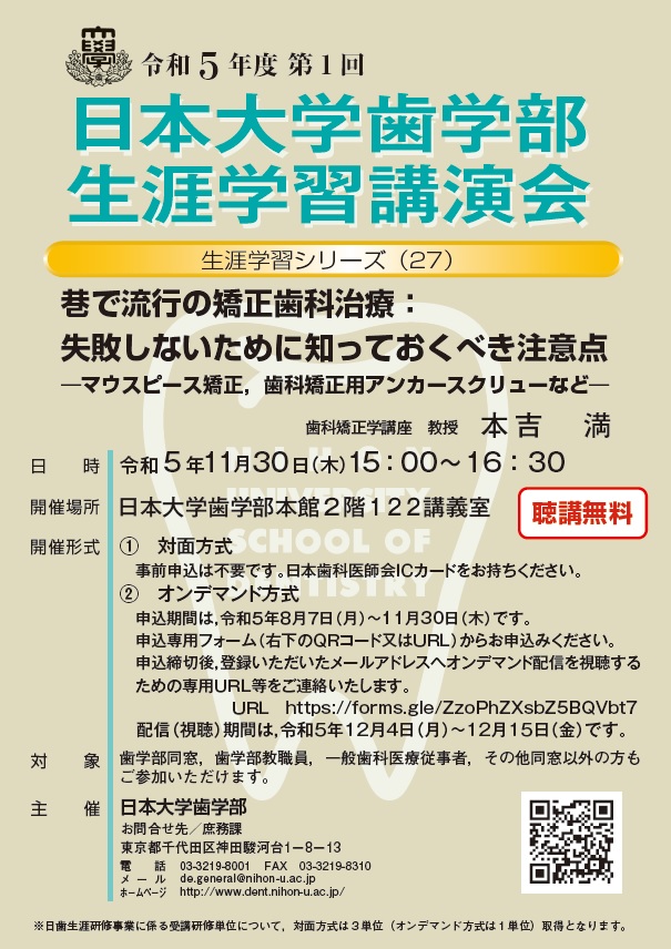 「令和5年度第1回 日本大学歯学部生涯学習講演会開催のお知らせ」より