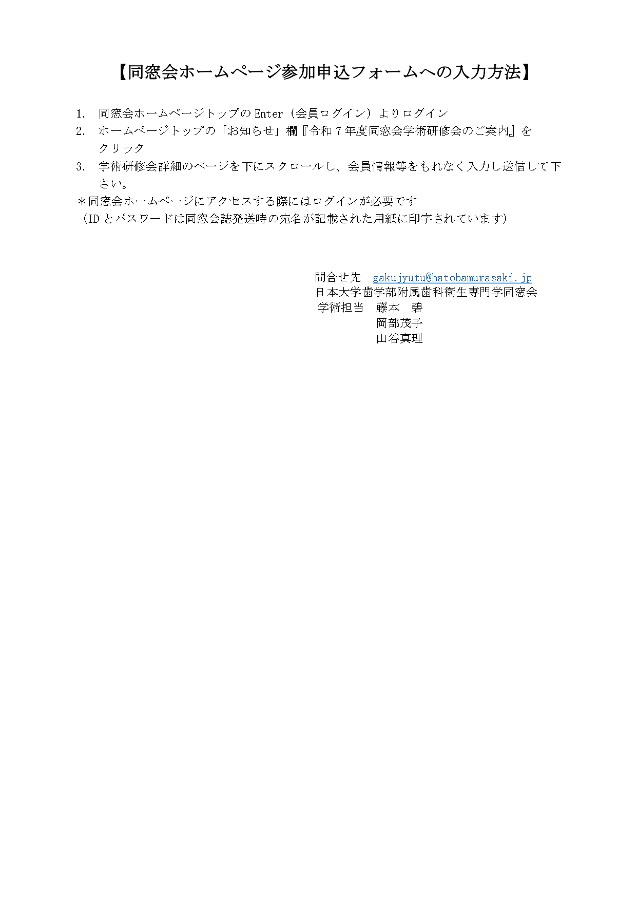 ■お問い合わせ先メールアドレス : gakujyutu@hatobamurasaki.jp